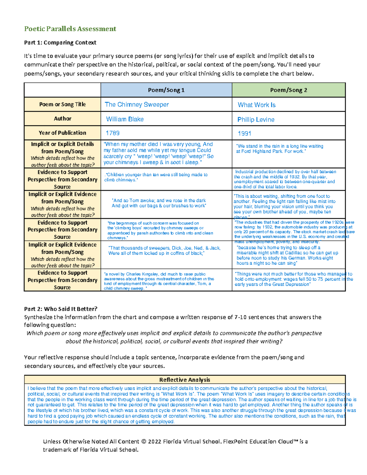 Poetic parallels assess rubric Unless Otherwise Noted All Content