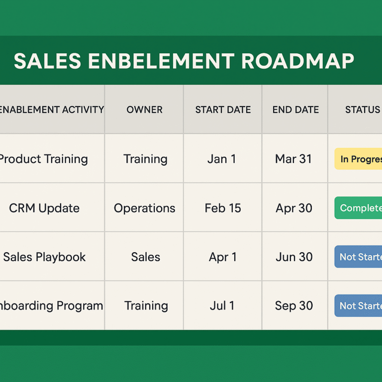 Sales Enablement Roadmap Template Excel Planning Sheet