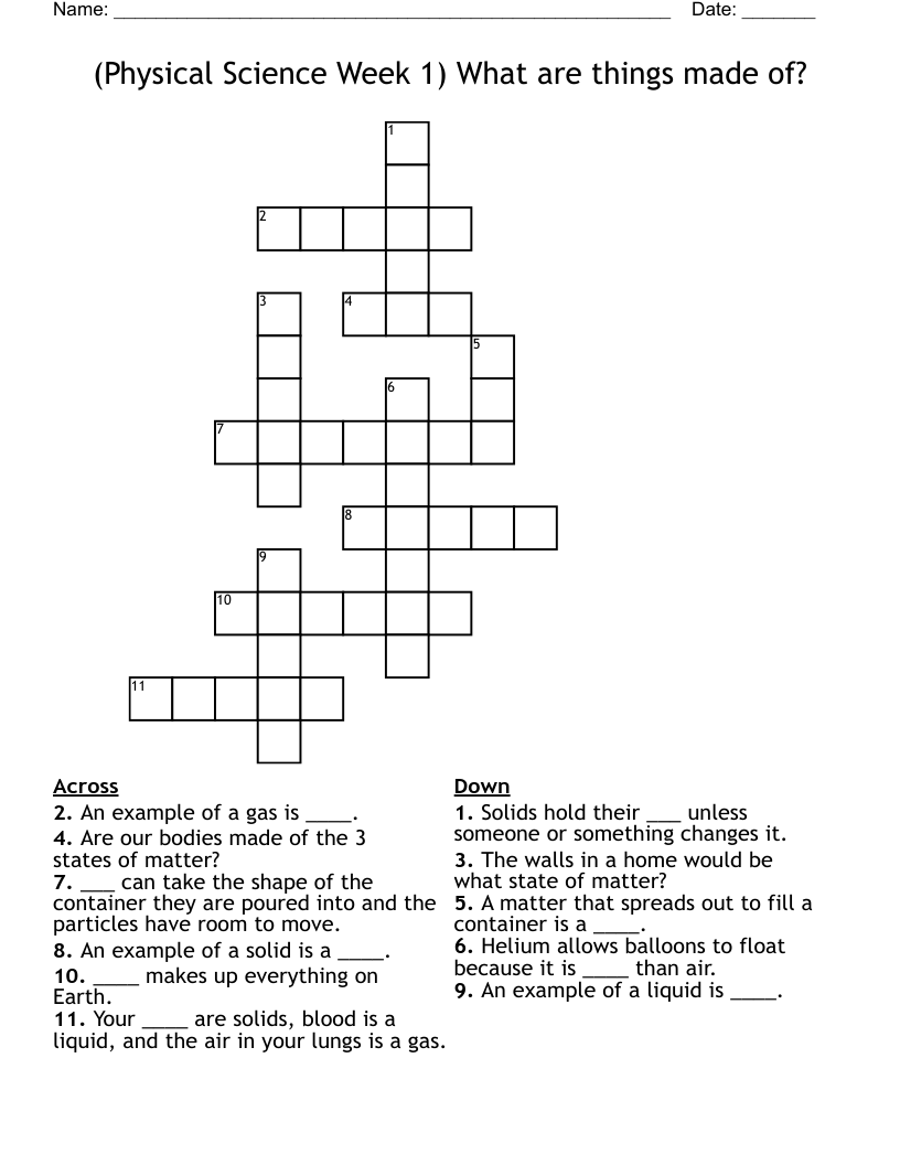 (Physical Science Week 1) What are things made of? Crossword WordMint