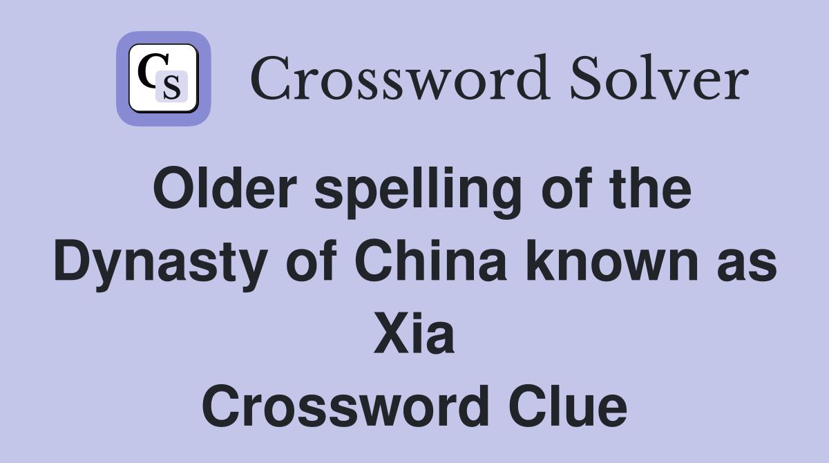 Older spelling of the Dynasty of China known as Xia Crossword Clue