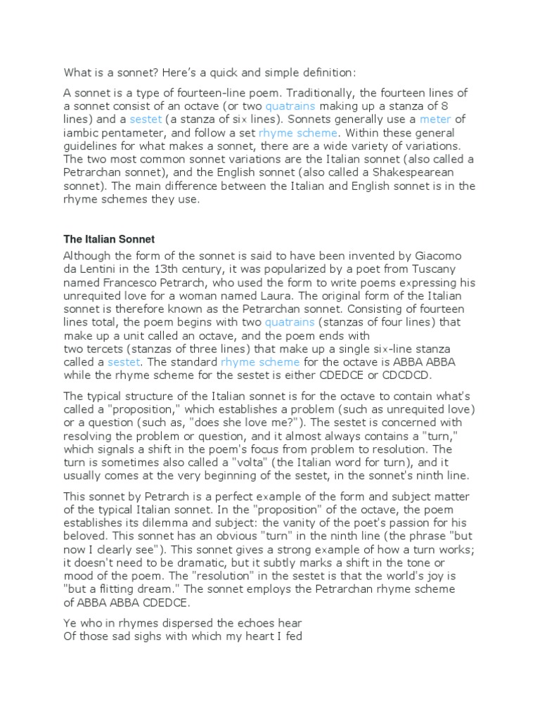 Petrarchan Sonnet Format What Is A Sonnet? The Sonnet Is A Popular