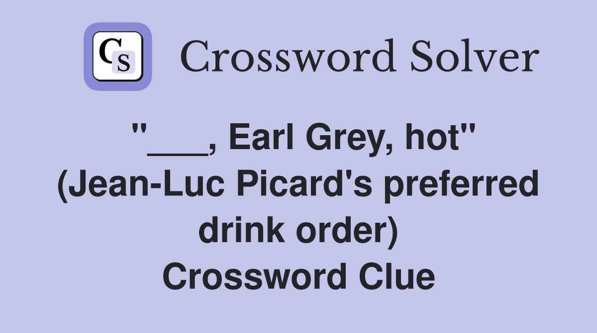Earl Grey hot quot (Jean Luc Picard #39 s preferred drink order) Crossword