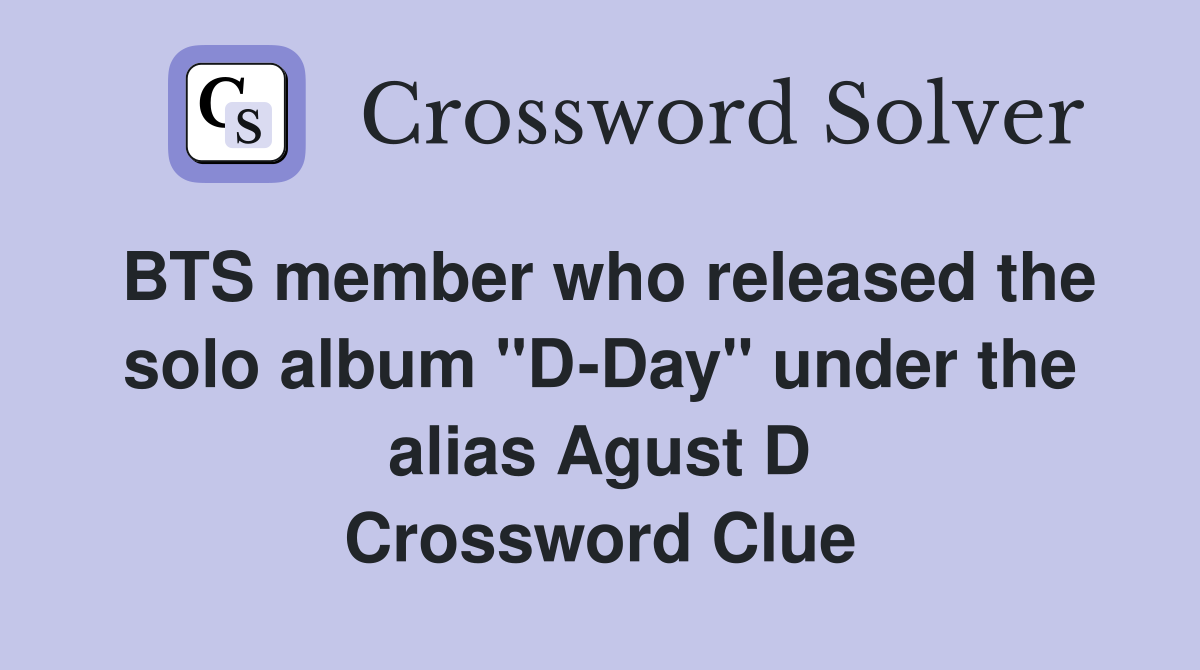 BTS member who released the solo album quot D Day quot under the alias Agust D