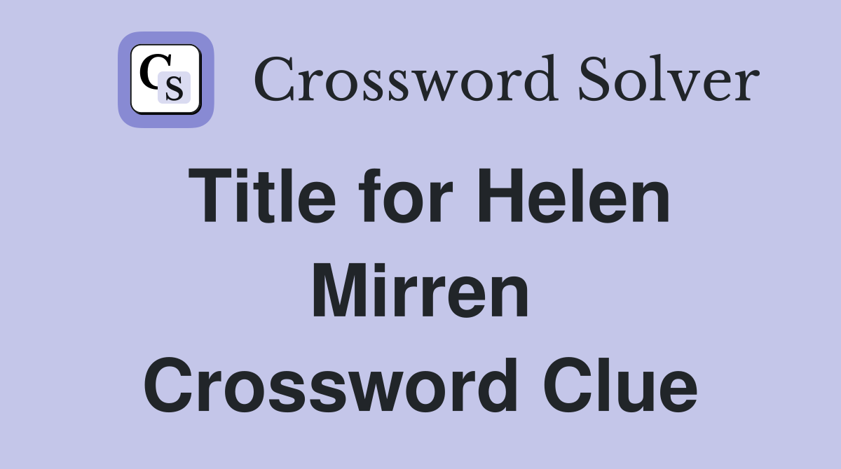 Title for Helen Mirren Crossword Clue Answers Crossword Solver