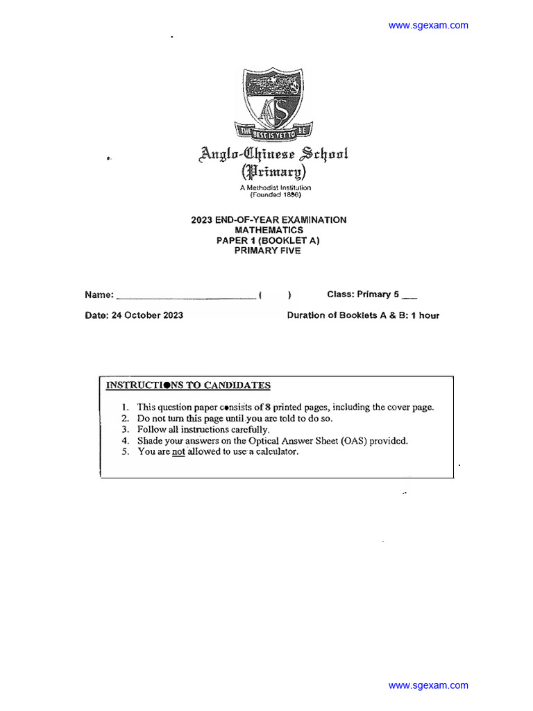 2023 P5 Maths End of Year Exam ACSP PDF Mathematics