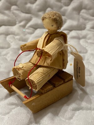 Vintage Corn Husk Doll Handmade Child On Sled 3 Czechoslovakia eBay
