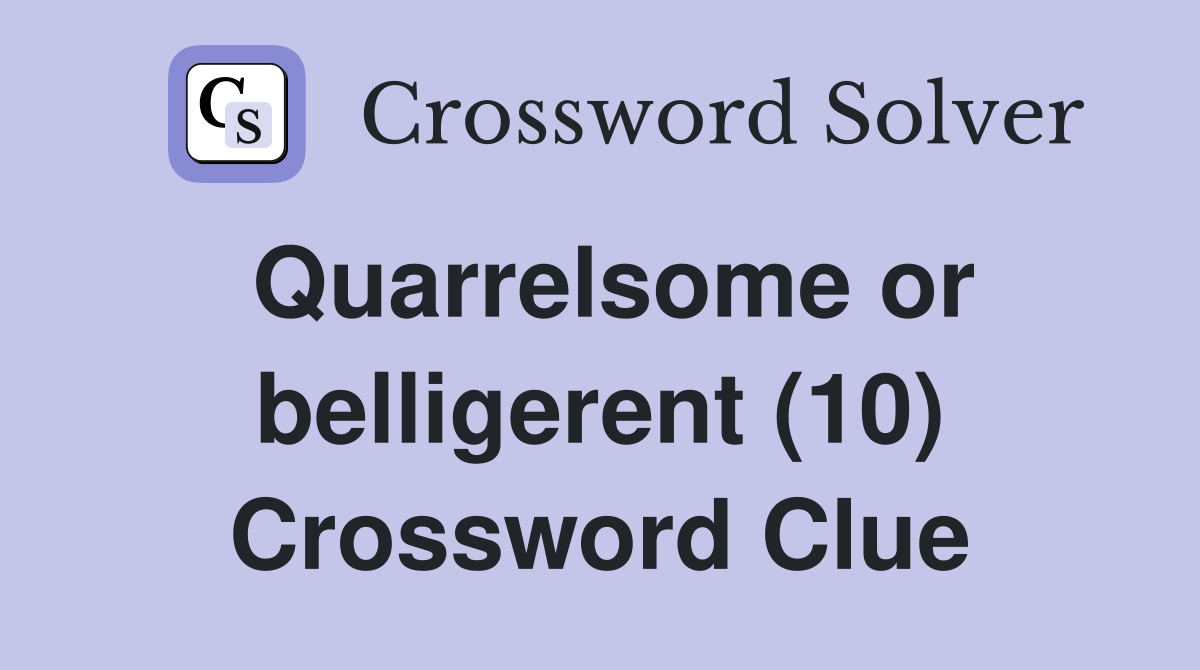 Quarrelsome or belligerent (10) Crossword Clue Answers Crossword Solver