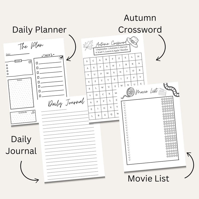 20 Page Autumn Journal Bundle Fall Bucket List Fall Crossword Puzzle