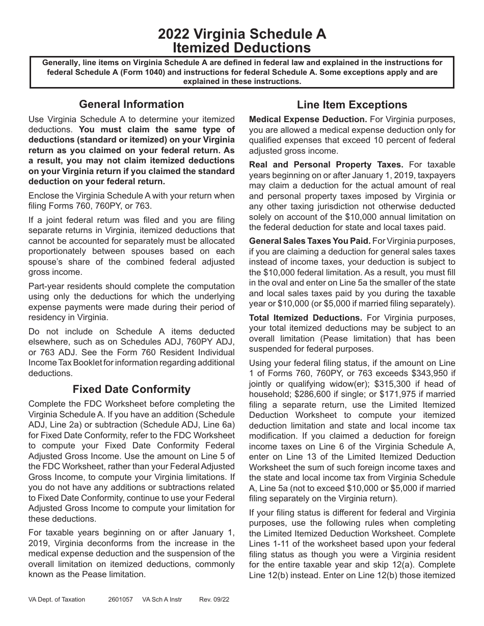 Download Instructions for Schedule A Itemized Deductions PDF 2022