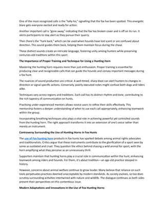 The Role of the Fox Hunting Horn in Traditional Fox Hunts pdf