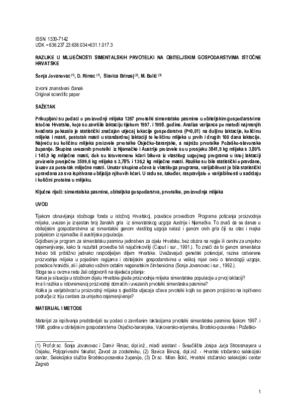 (PDF) Differences in Milk Production Traits Among First Lactation