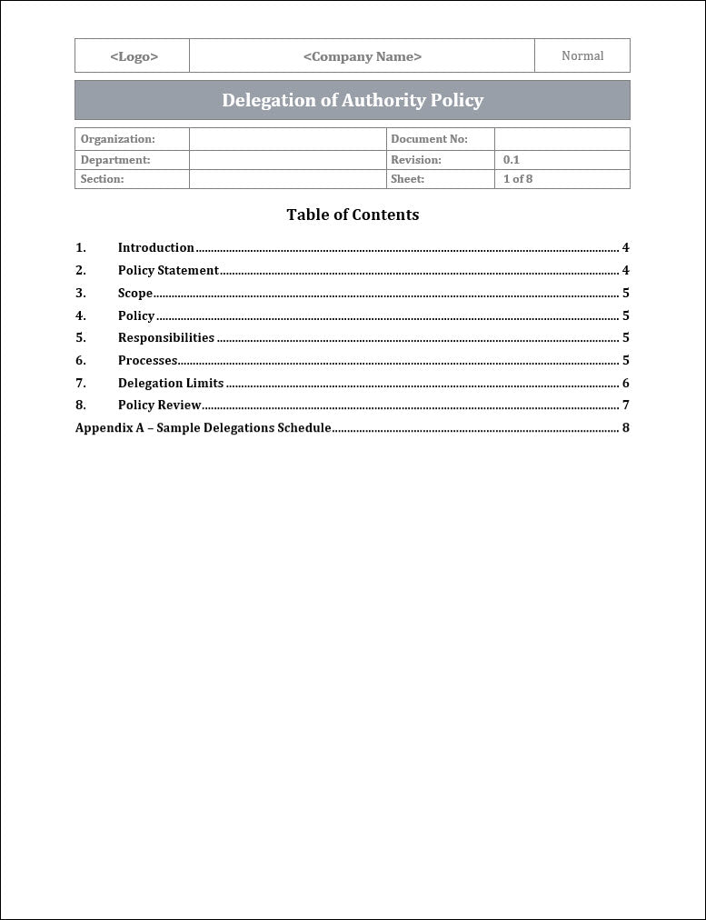 Delegation of Authority Policy Template ITSM Docs ITSM Documents