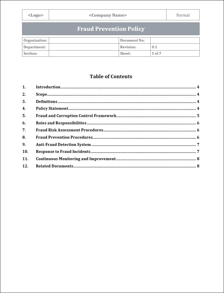 Fraud Prevention Policy Fraud Risk Assessment Procedures Template