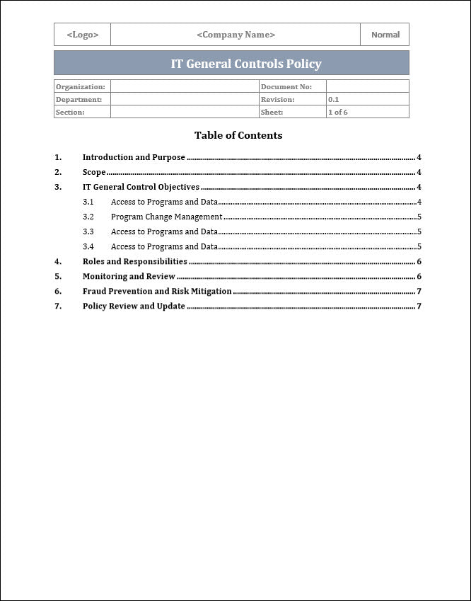 IT General Controls Policy Template ITSM Docs ITSM Documents