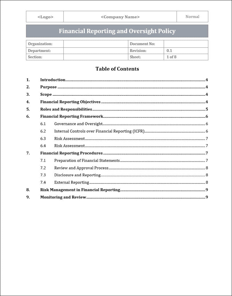 Financial Reporting Oversight Policy Template ITSM Docs ITSM