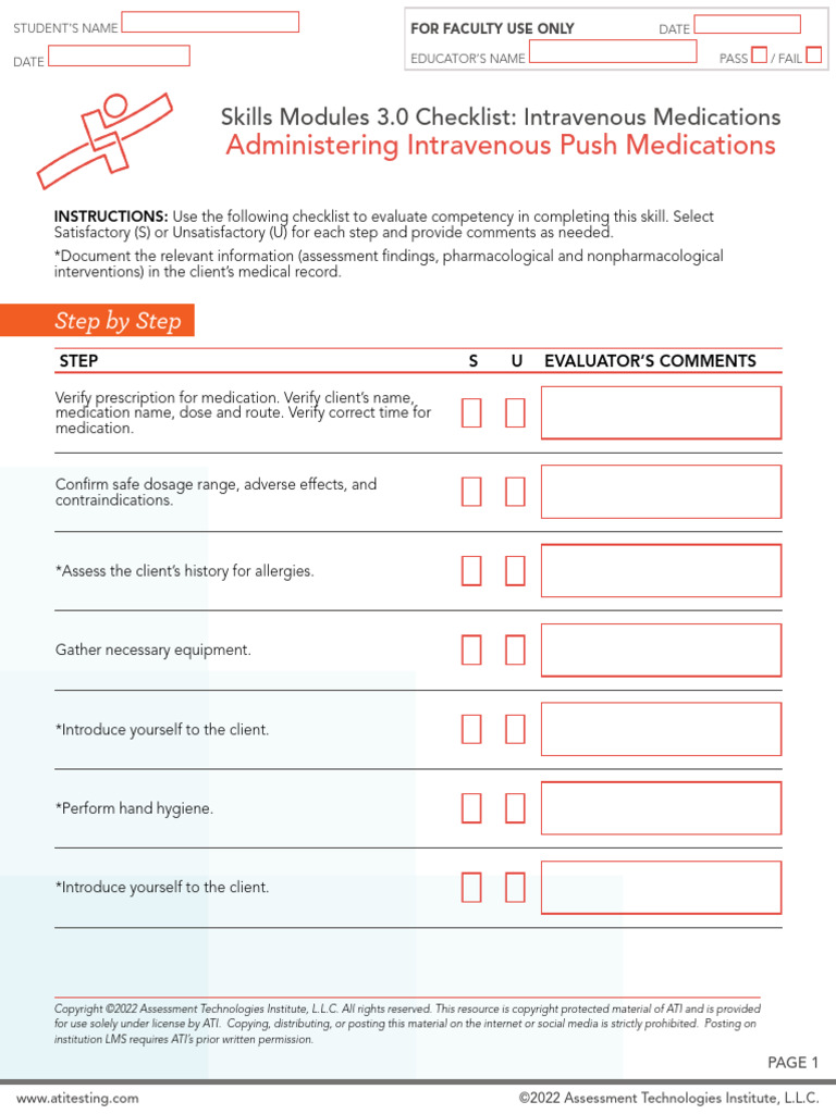 Skills Checklist IV Push PDF Intravenous Therapy Drugs