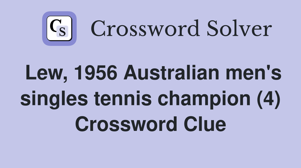Lew 1956 Australian men #39 s singles tennis champion (4) Crossword Clue