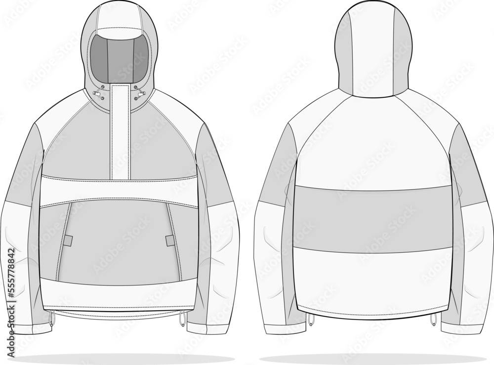 Anorak half zip nylon rain jacket design template Stock Vector Adobe