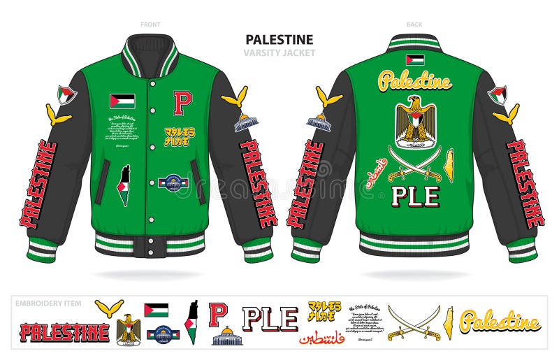 Vintage Varsity Palestine Country Jacket Mockup Template Vector Stock