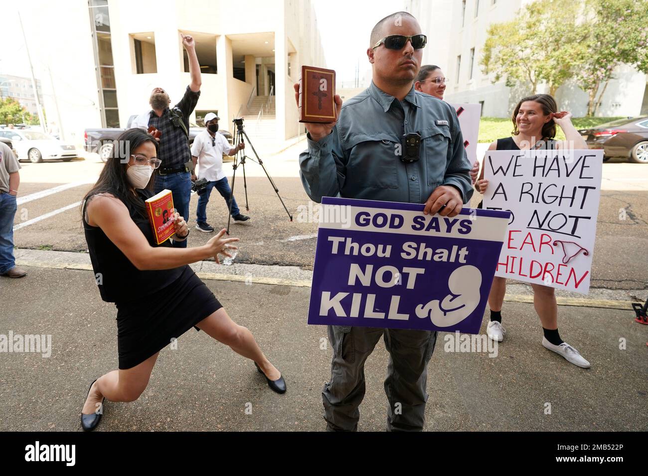 Anti abortion activist Gabriel Olivier center holds his Bible and a