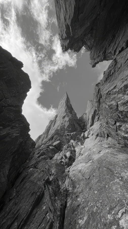 Jagged Rock Face in Monochrome Generative AI Stock Illustration