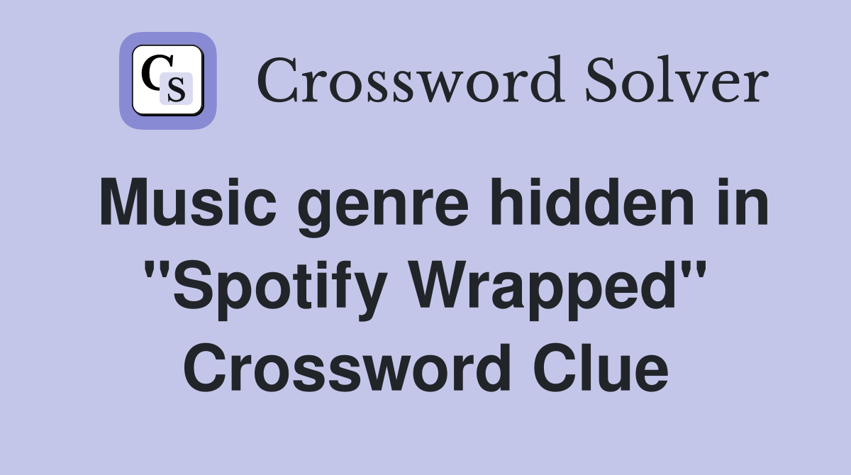 Music genre hidden in quot Spotify Wrapped quot Crossword Clue Answers