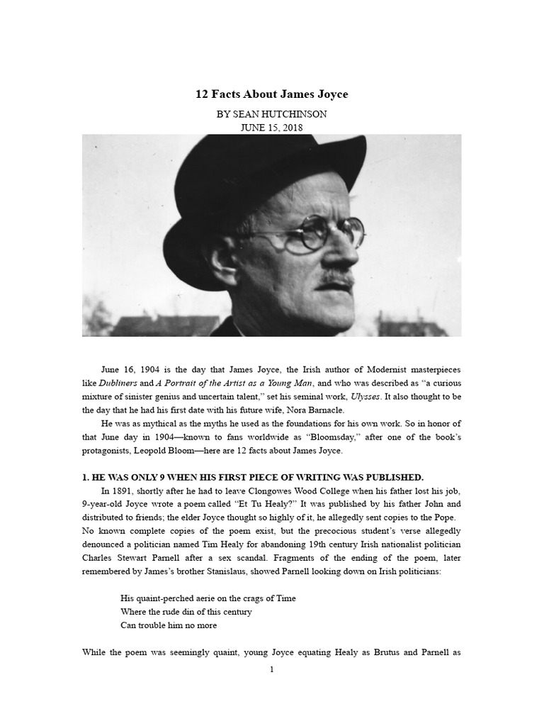 12 Facts About James Joyce PDF James Joyce Ulysses (Novel)