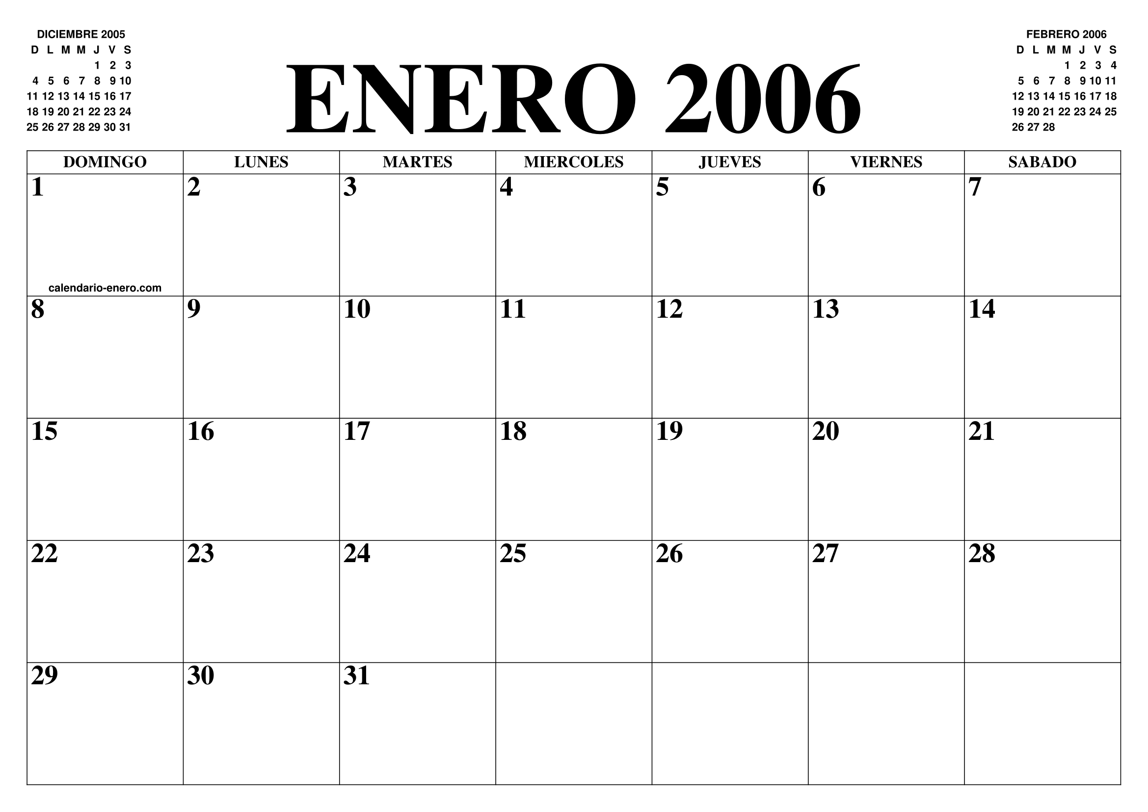 CALENDARIO ENERO 2006 : EL CALENDARIO ENERO PARA IMPRIMIR GRATIS MES