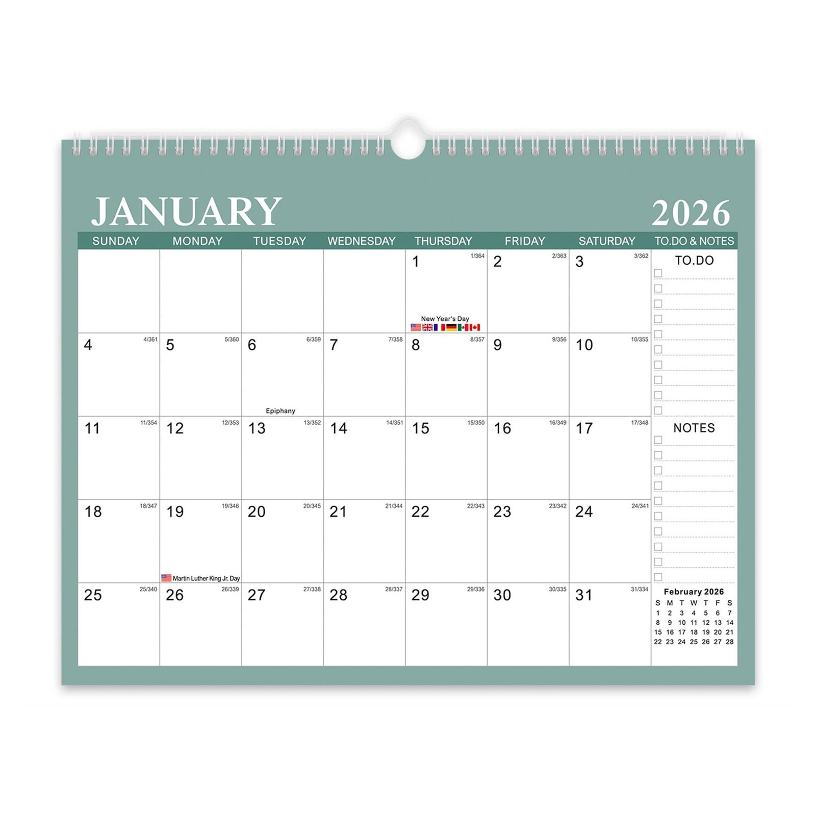 2026 2027 Wall Calendar Twin Coil Binding Calender 18 Month Runs from