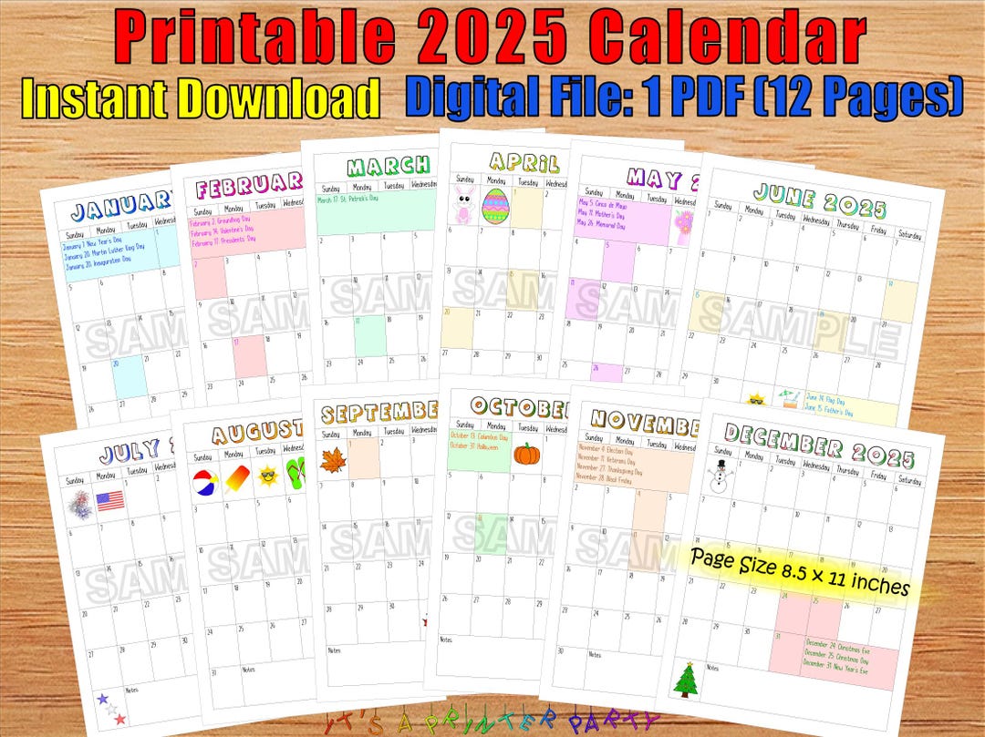 Printable 2025 Calendar Digital Download PDF Download Simple