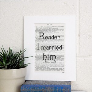 Jane Eyre Book Quote Art: Reader I married him in 2025 Jane eyre