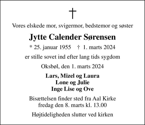 Jytte Calender Sørensen Dødsannoncer i Danmark