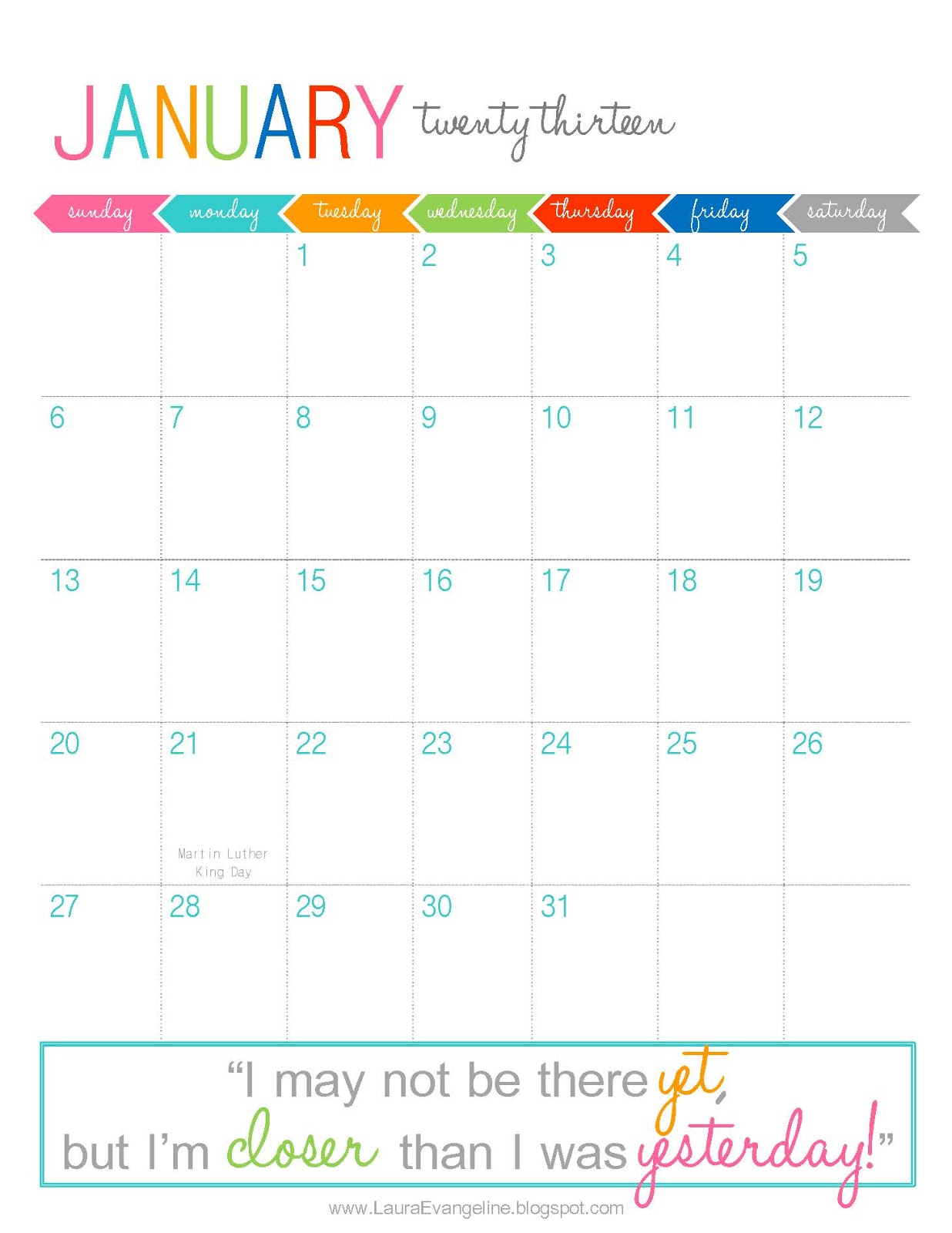 Download: January 2013 Printable Calendar Life After Breakfast