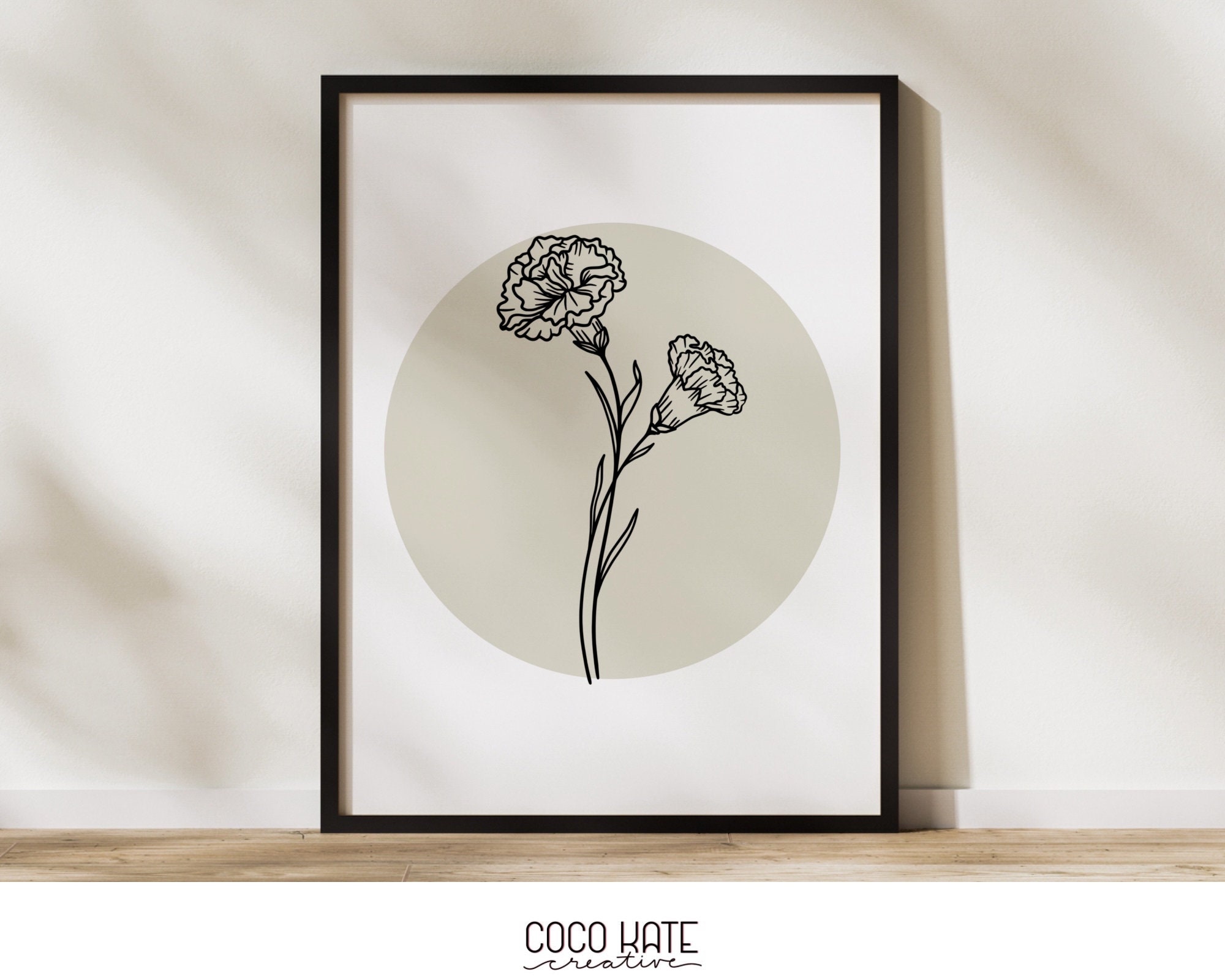 Carnation Floral Wall Art January Birth Flower Print Digital