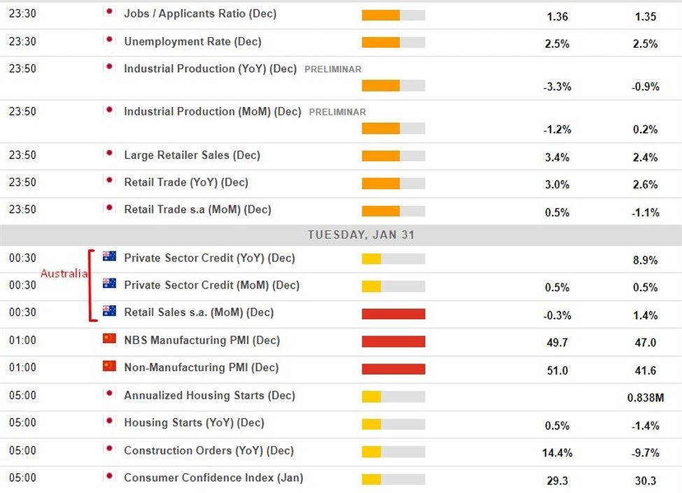 Economic calendar in Asia Tuesday 31 January 2023 China official