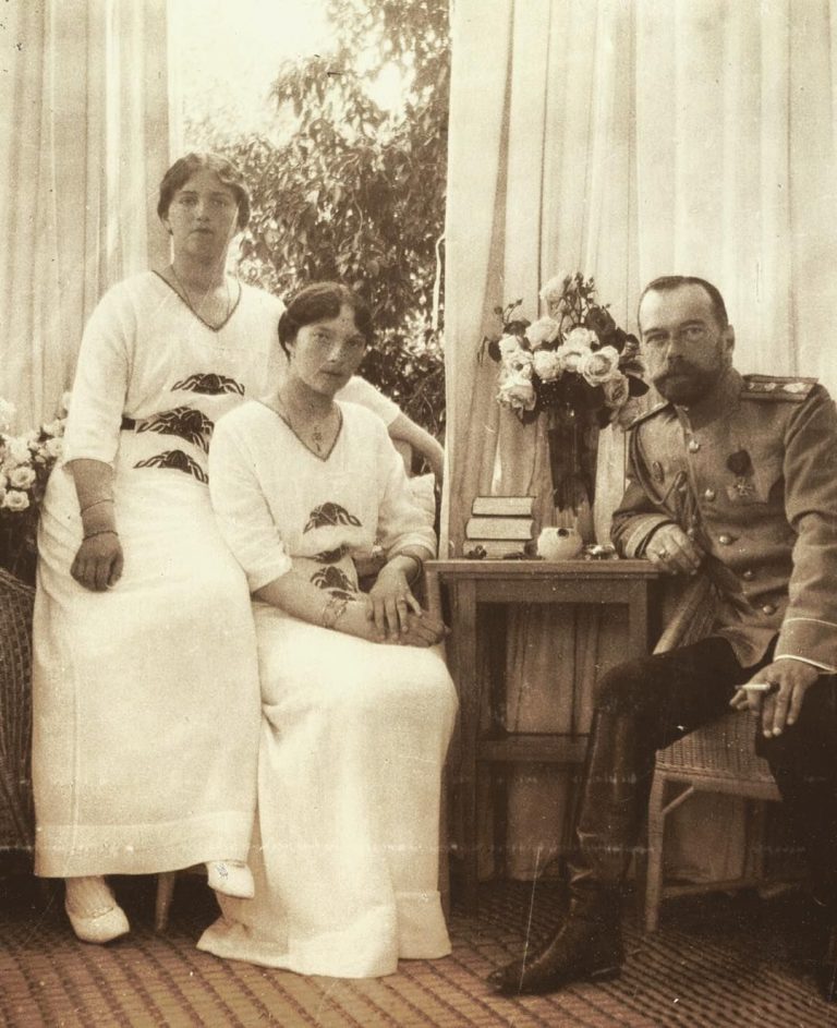 Tsar Nikolai II with his daughters Grand Duchesses Tatiana and Marie