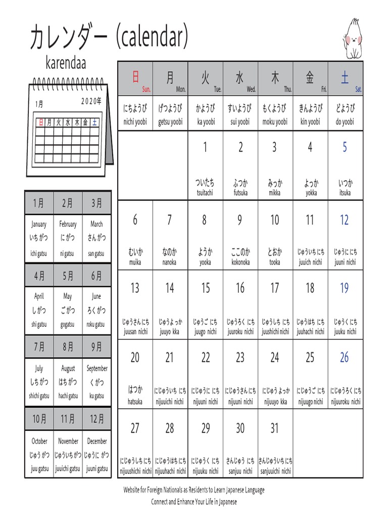 Days of months in Japanese : Figure out Japanese calendar Linkup Nippon
