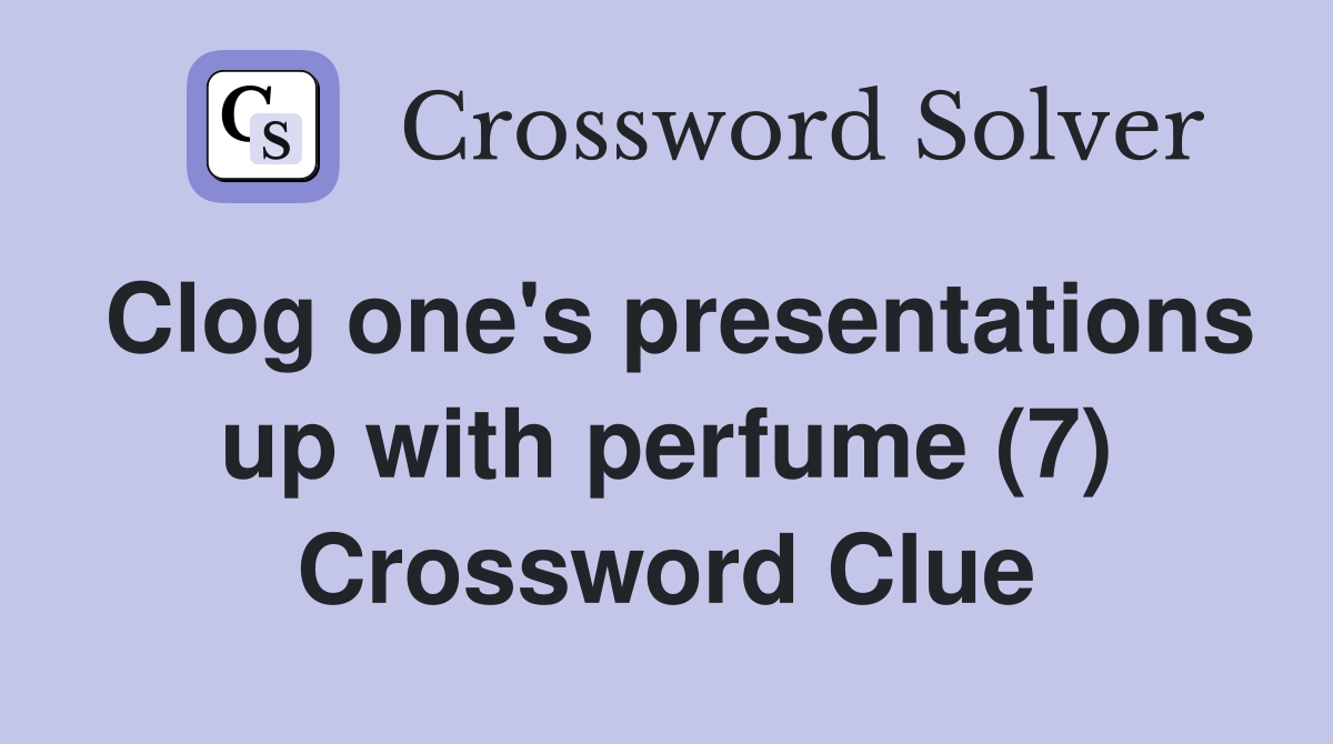 Clog one s presentations up with perfume (7) Crossword Clue Answers