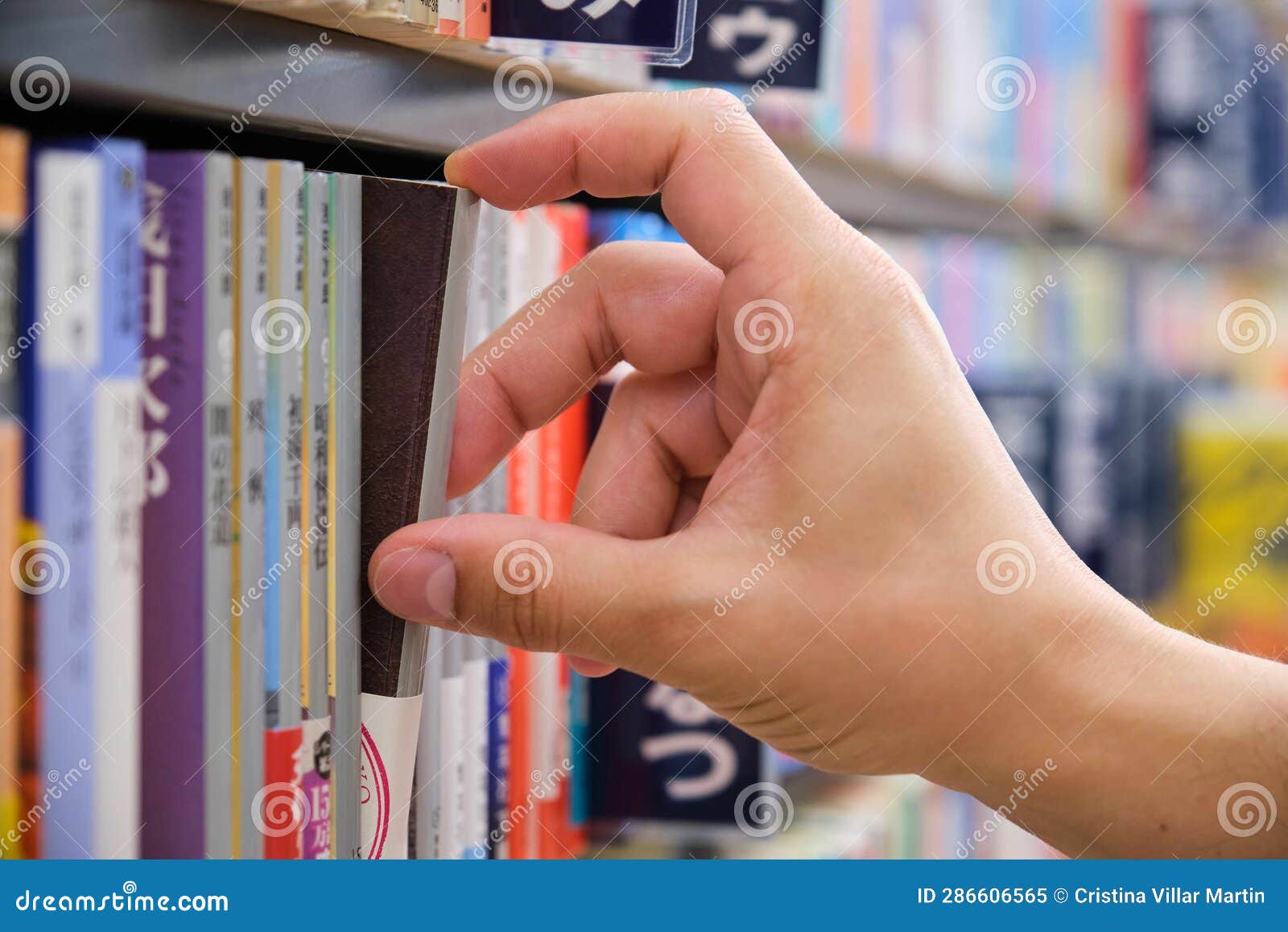 Hand Grabbing a Comic at a Japanese Comic Book Store in Tokyo Stock