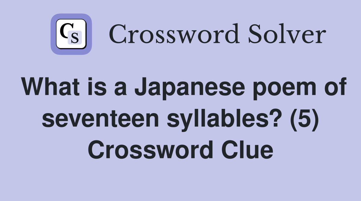 What is a Japanese poem of seventeen syllables? (5) Crossword Clue