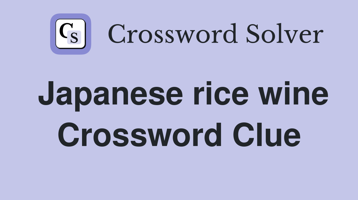 Japanese rice wine Crossword Clue Answers Crossword Solver