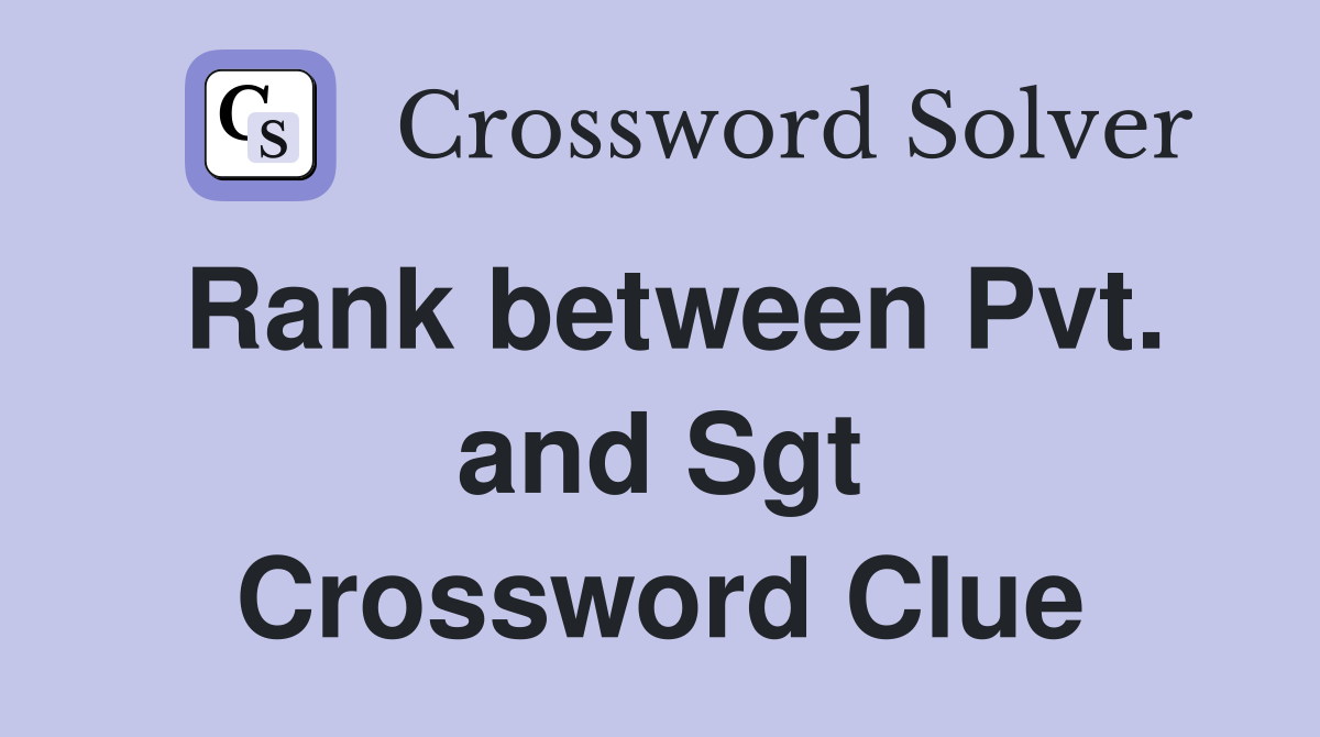 Rank between Pvt and Sgt Crossword Clue Answers Crossword Solver