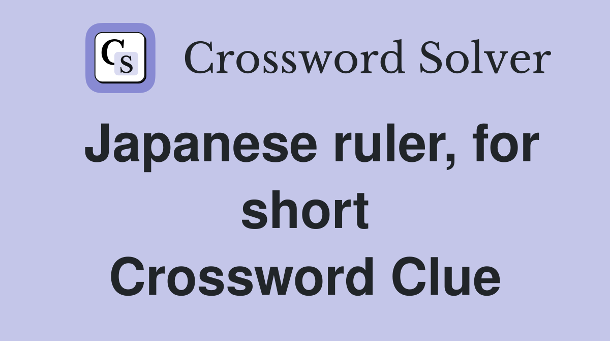 Japanese ruler for short Crossword Clue Answers Crossword Solver