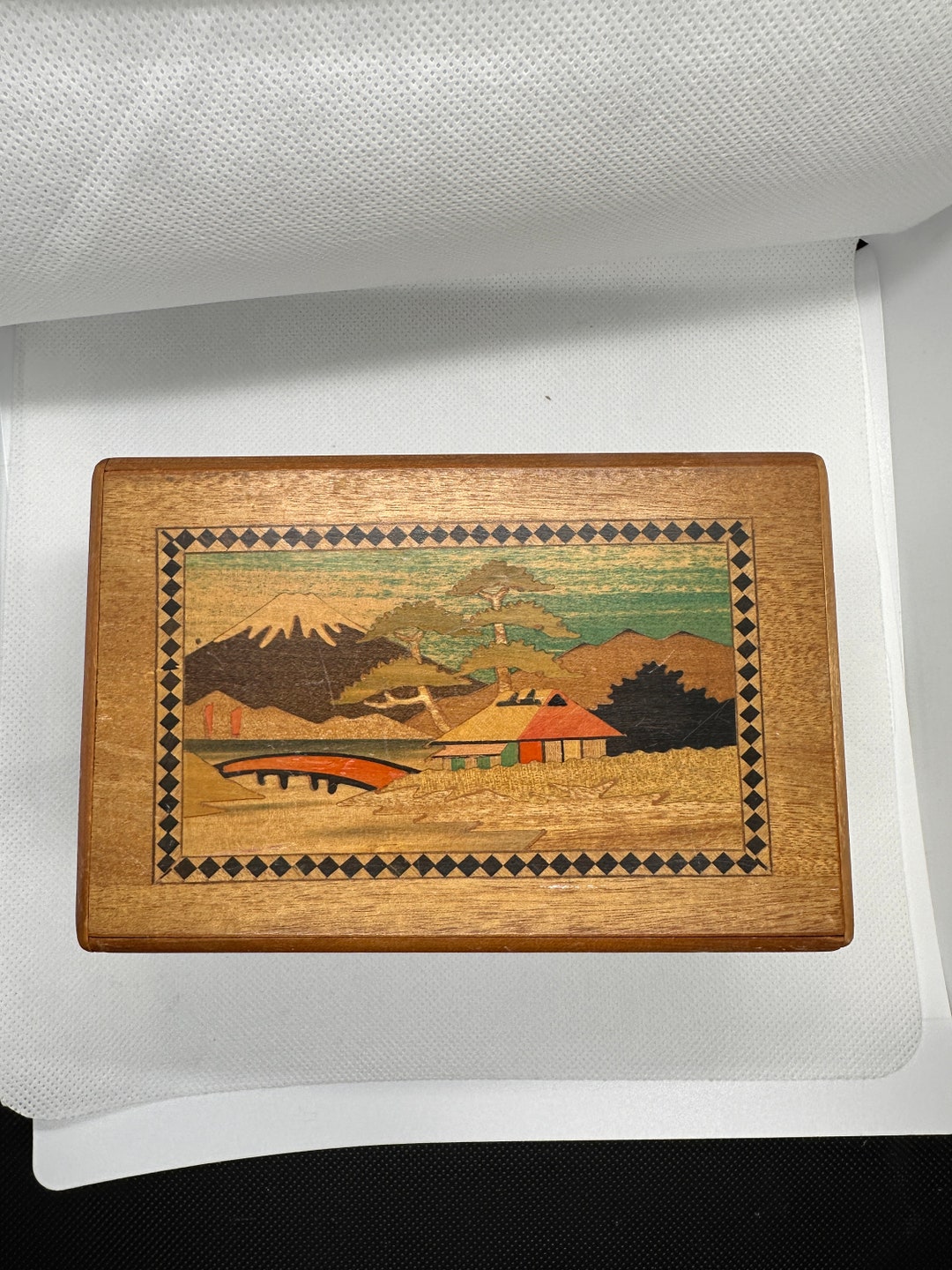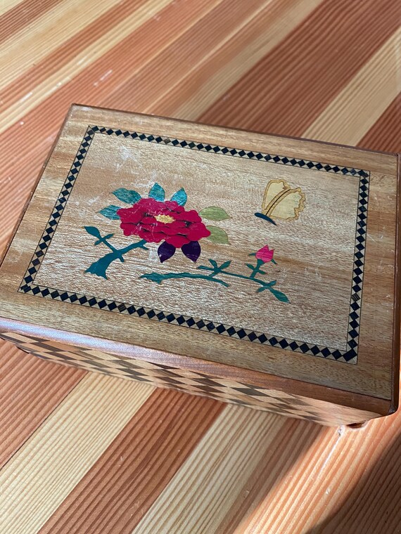 Vintage Japanese Wood Inlaid Puzzle Box