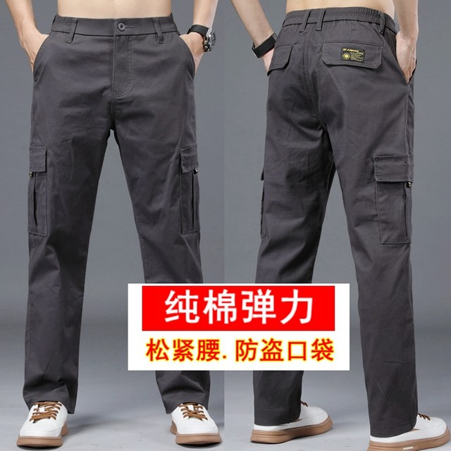 Autumn and winter cotton cloth elastic pants men #39 s straight puzzle