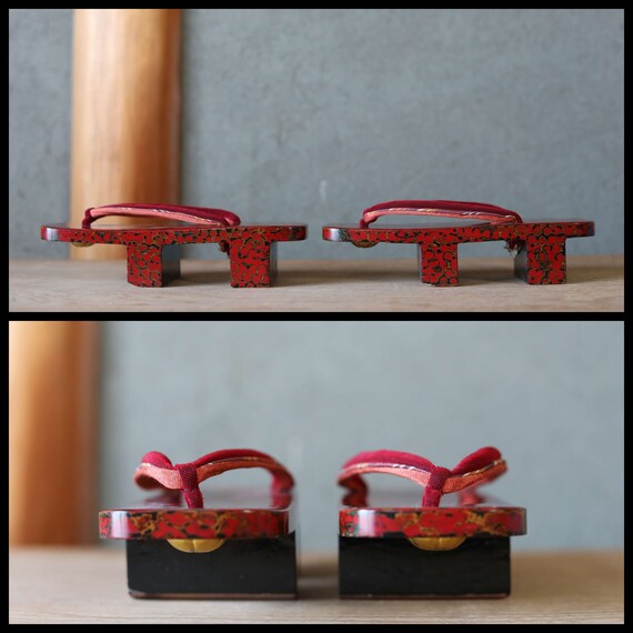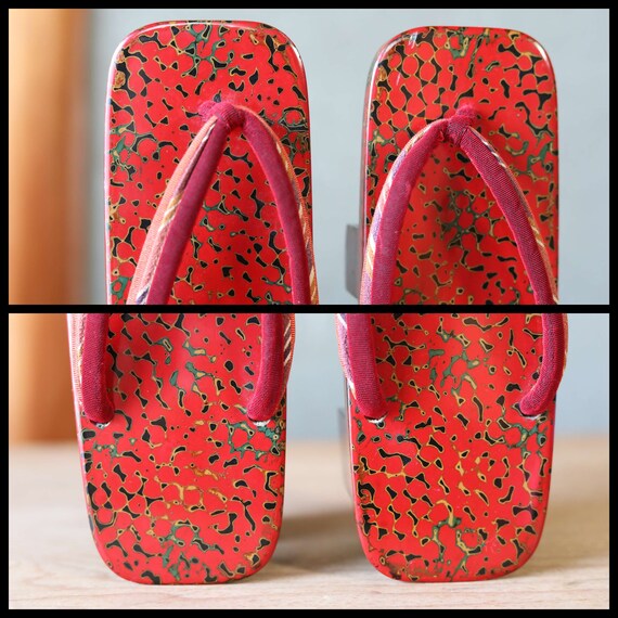 Japanese vintage GETA wooden clog lacquer ware marbl Gem