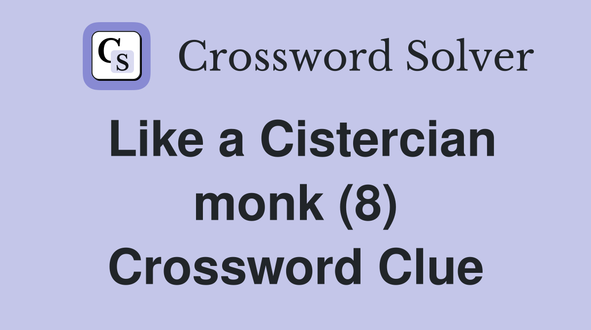 Like a Cistercian monk (8) Crossword Clue Answers Crossword Solver