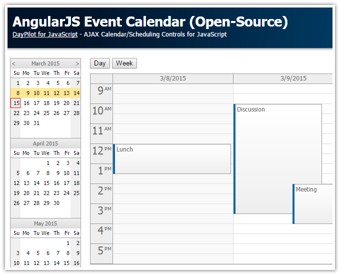 JavaScript Event Calendar DayPilot for JavaScript Calendar