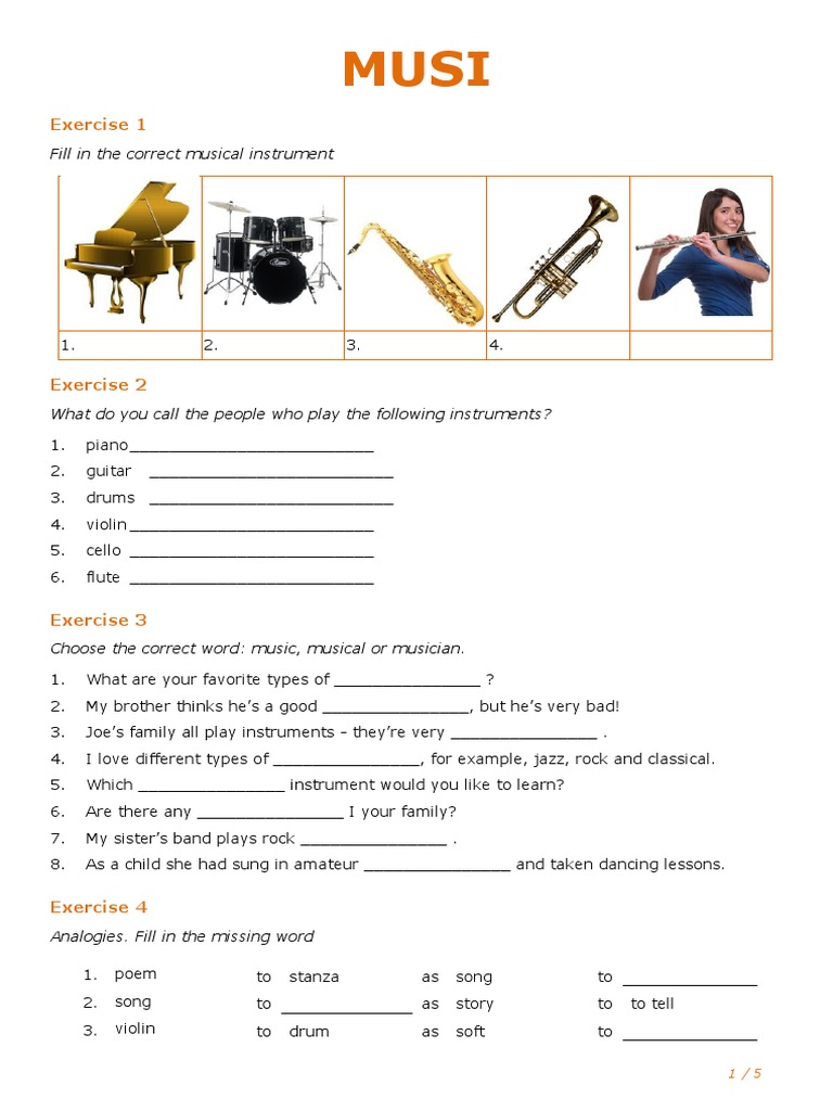 Musical Instruments Crossword Puzzle PDF Violin Jazz