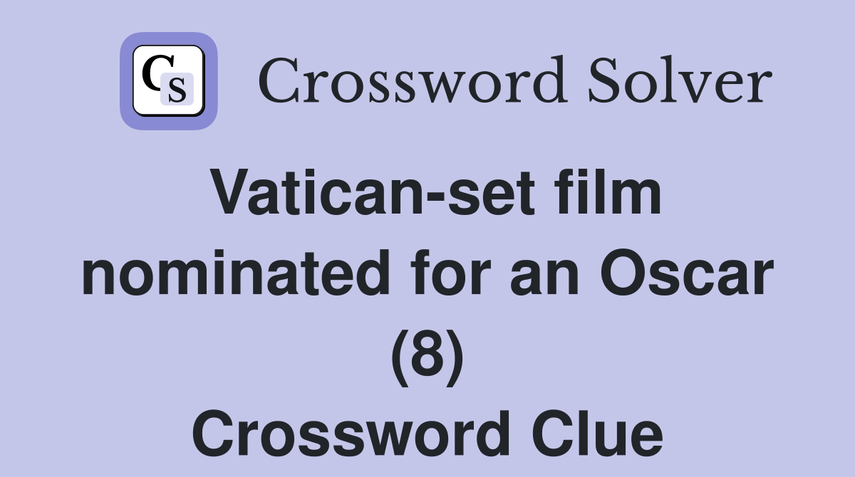 Vatican set film nominated for an Oscar (8) Crossword Clue Answers